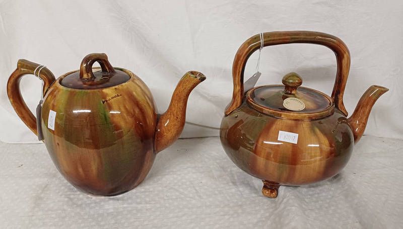 2 dunmore pottery teapots in mottled green & brown both impressed marks to side, tallest...