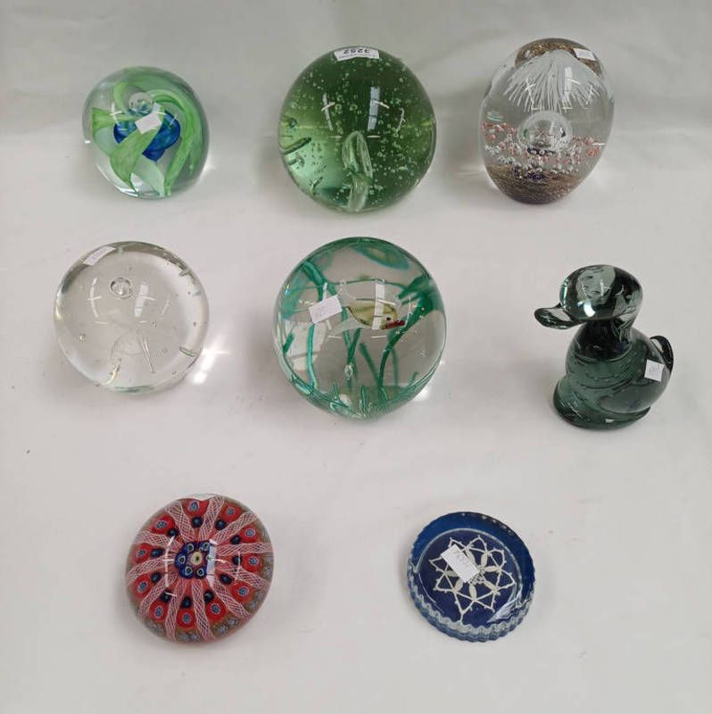 Selection of glass paperweights, pottery hot water bottle, oriental porcelain teaset, paragon porcelain teaset, various...