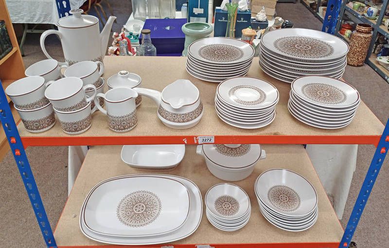 Quantity of noritake progression 9044 porcelain dinnerware over 2 shelves