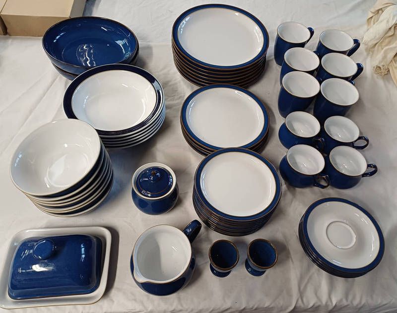 Selection of denby porcelain dinnerware with imperial blue pattern