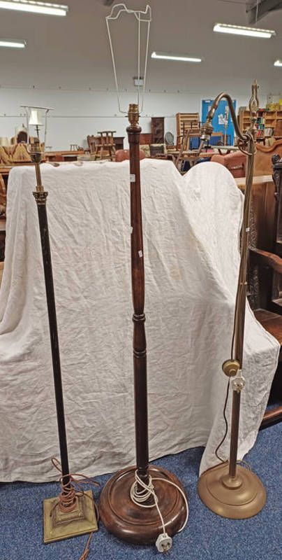 Beech standard lamp with circular base, brass corinthian column standard lamp, etc -3-