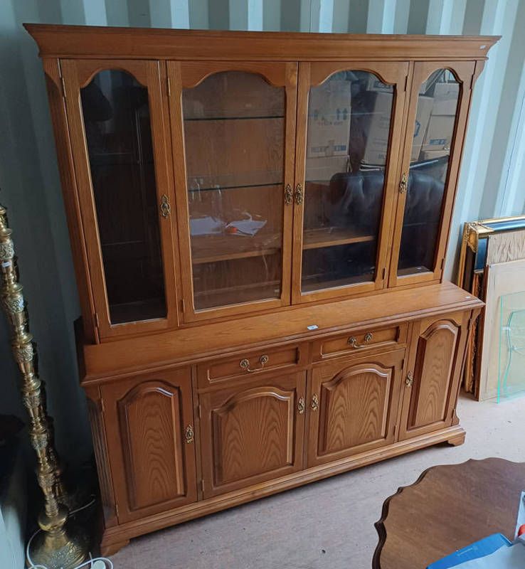 Late 20th century oak dresser with 4 glazed doors over base with 2 drawers & 4 panel doors by jentique - 178 cm tall x 163 cm wide