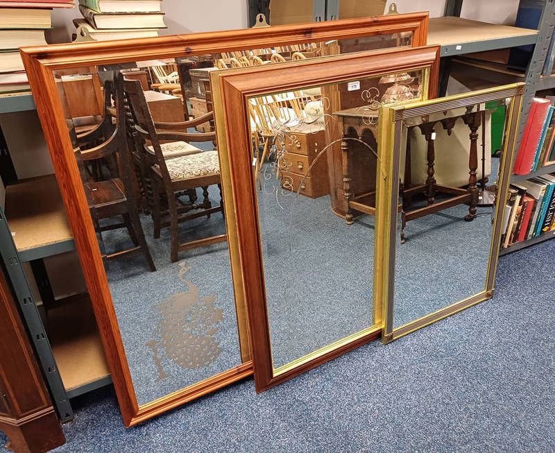 Gilt framed rectangular mirror with bevelled edge & 2 other mirrors