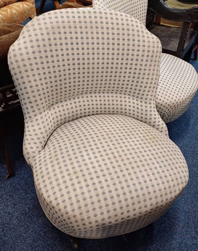 19th century upholstered side chair on turned supports, 80cm tall