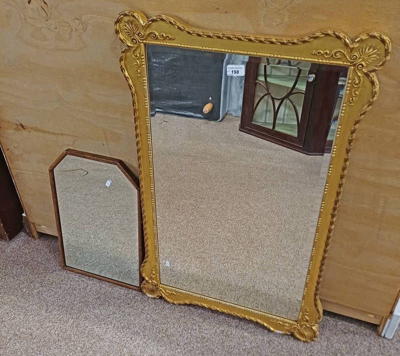 Decorative gilt framed rectangular mirror with bevelled edge & one other mirror - glass dimensions 75 cm x 44 cm