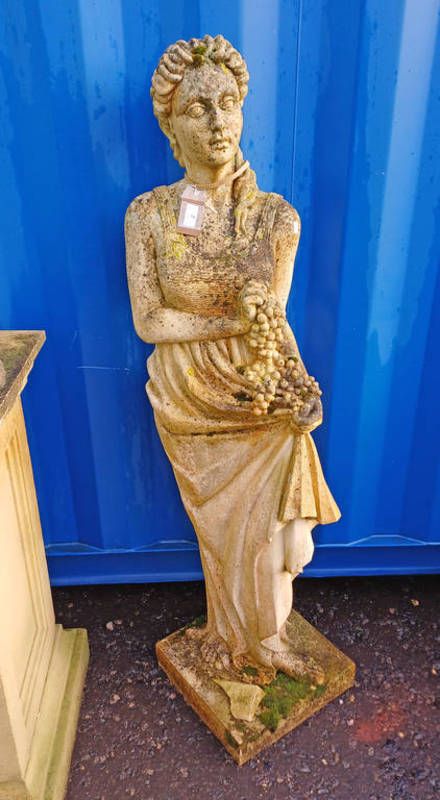 Reconstituted stone garden statue of classical maiden 142 cm tall