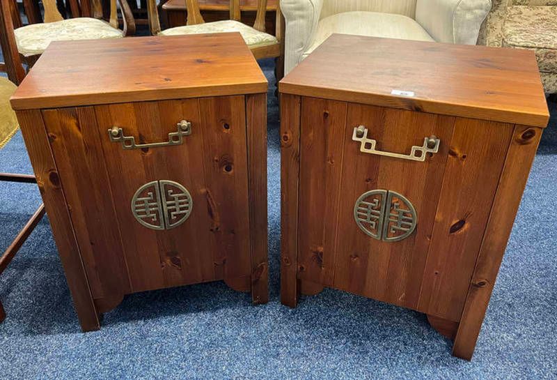 Pair of pine oriental design bedside cabinets - 60cm tall