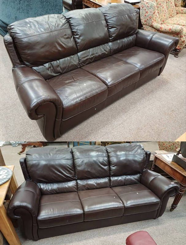 Himolla red leather reclining 4 seater settee & matching 3 seater settee