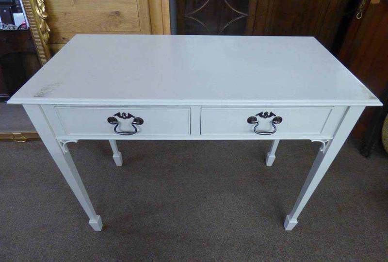 Painted side table with 2 drawers on square tapered supports, 101cm long