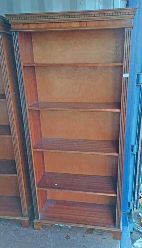 Late 20th century walnut open bookcase with adjustable shelves on splayed supports - 194cm tall x 90cm wide