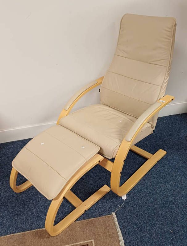 Verikon beech framed cream leather cantilever armchair & matching footstool