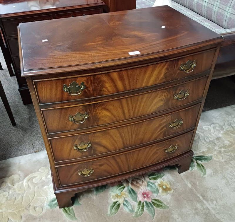 20th century mahogany bow front chest of 4 drawers on bracket supports 85 x 79 cm