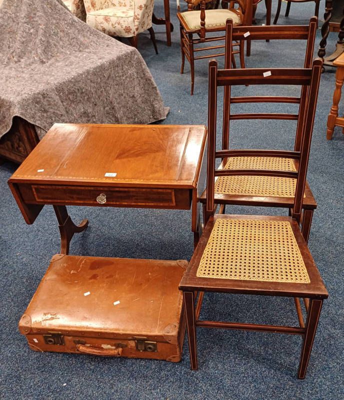 Inlaid mahogany sofa table with single drawer, pair of inlaid hand chairs, etc.