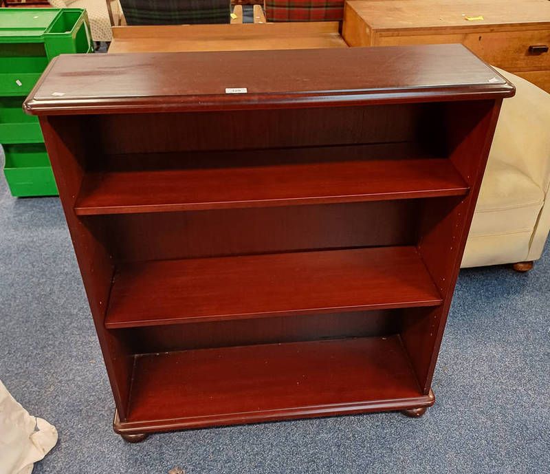 Mahogany open bookcase with adjustable shelves - 101 cm tall x 92 cm wide