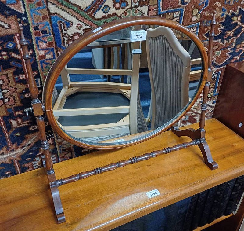 20th century mahogany oval dressing table mirror by inglesants, leicester labelled to back