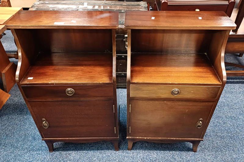 Pair of 20th century mahogany bedside cabinets with single drawer over panel door