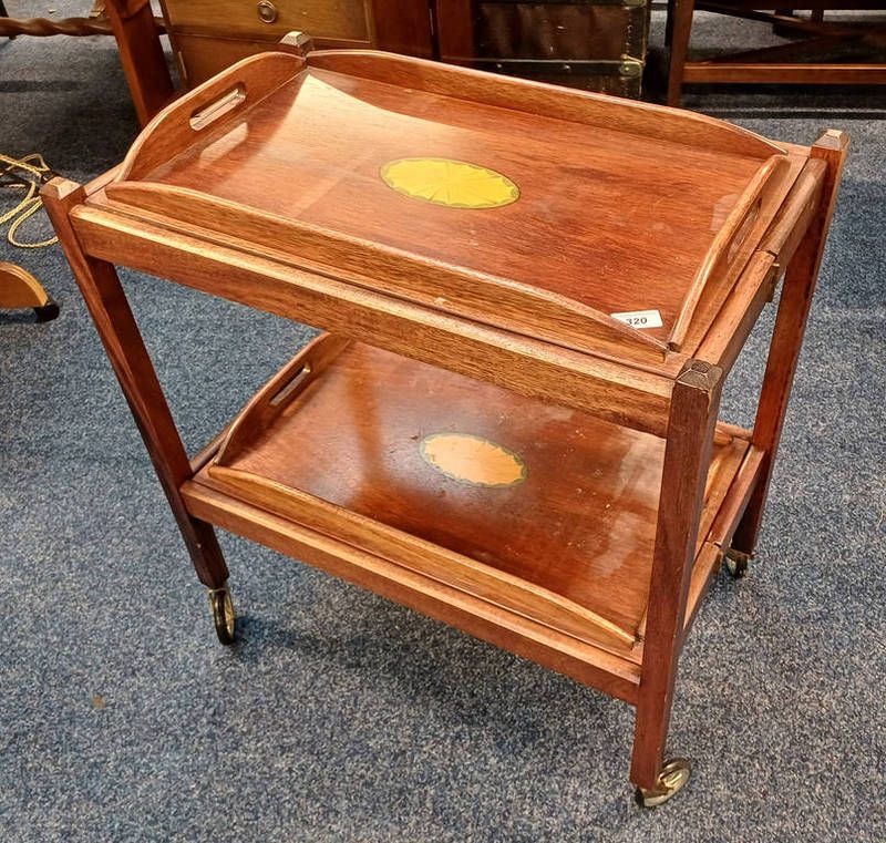 Mahogany piano stool with lift lid seat, mahogany 2 tier trolley etc