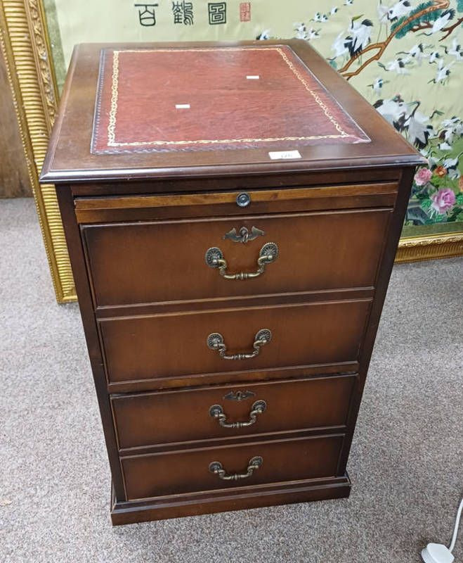 Late 20th century mahogany 2 drawer filing chest with leather inset top & slide - 75 cm tall x 49 cm wide