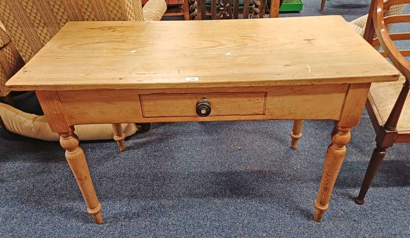19th century pine table with single drawer & drop flap on turned supports - 119 cm long