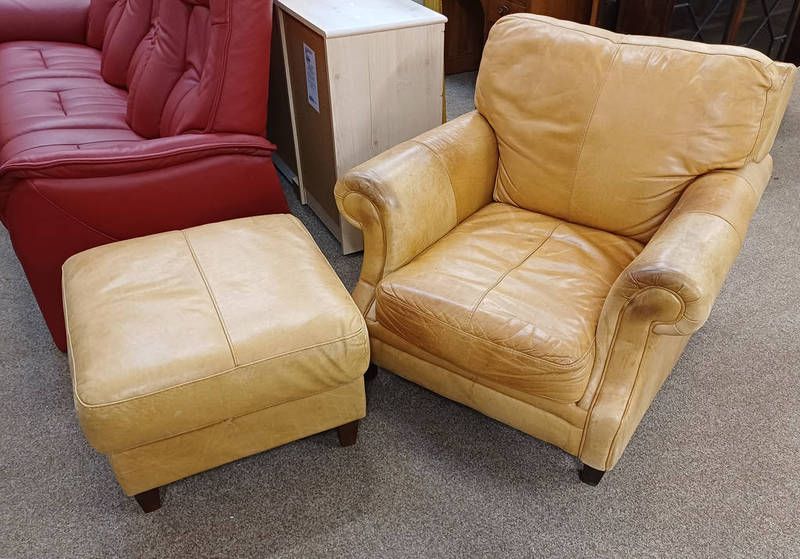 Verikon beech framed cream leather cantilever armchair & matching footstool