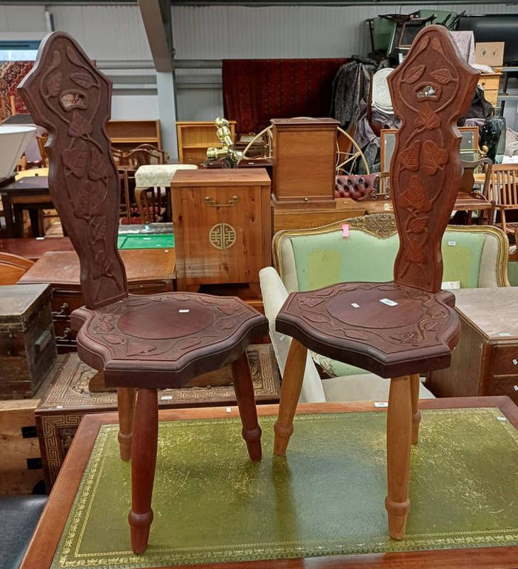 Pair of 19th century style carved mahogany spinning chairs