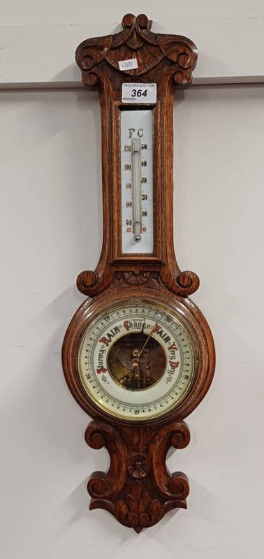 20th century carved oak cased aneroid barometer