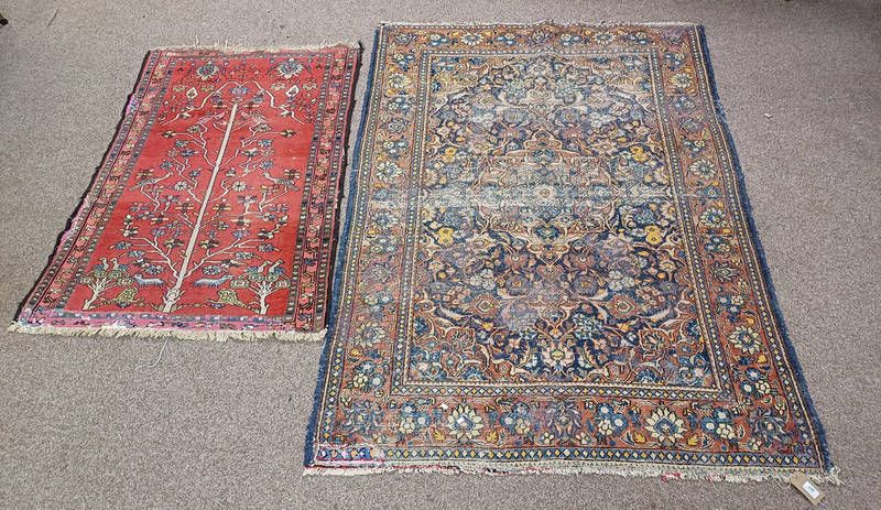Middle eastern rug with blue and red central medalion pattern & 1 other rug - largest 192 cm long x 138 cm wide