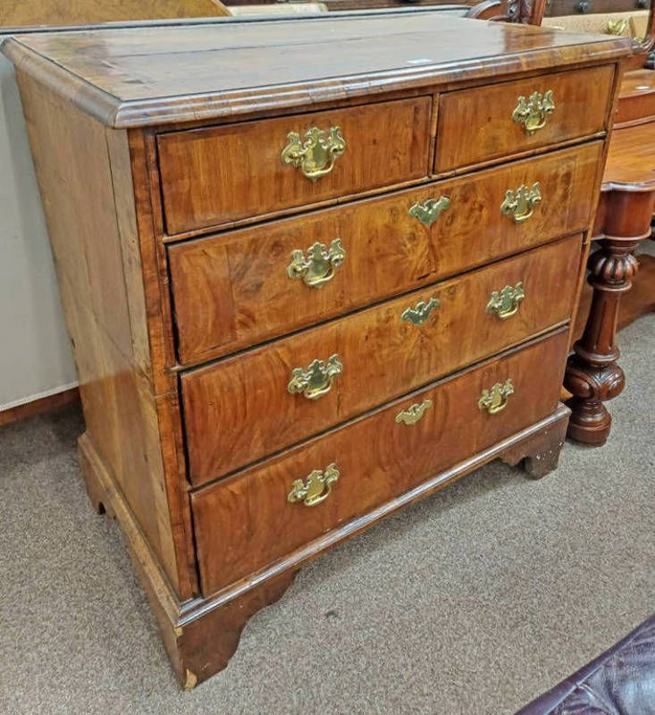18th century walnut chest with 2 short over 3 long drawers on bracket supports - 98 cm tall