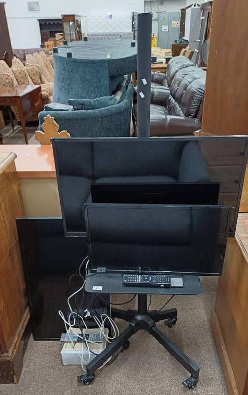 Sony bravia 32'' tv on movable stand, 2 other tv's, etc