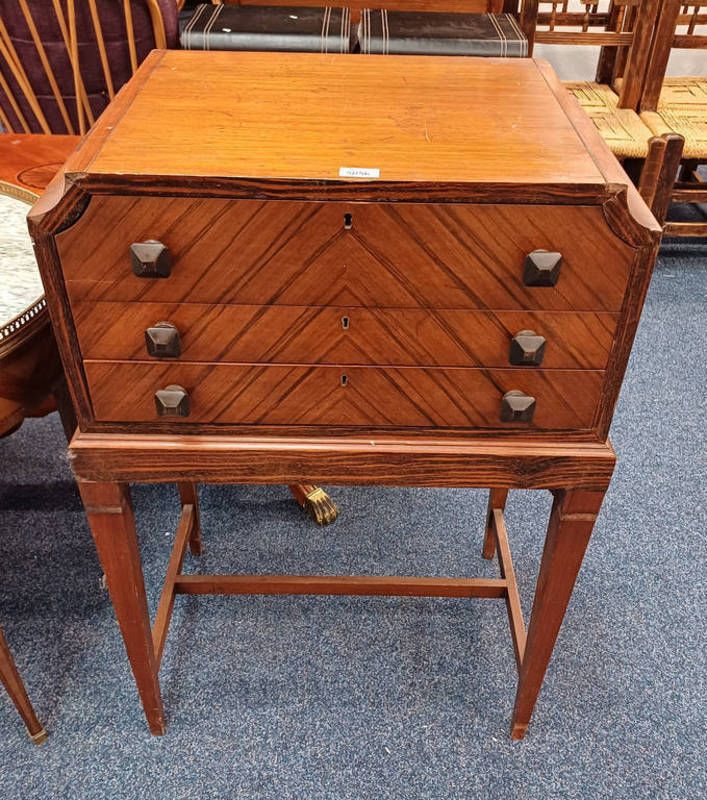 Art deco oak canteen of 3 drawers on square tapering supports - no contents, 96cm tall x 65cm wide