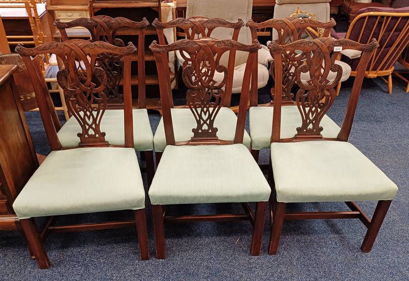 Set of 6 19th century mahogany dining chairs with fretwork backs on square supports