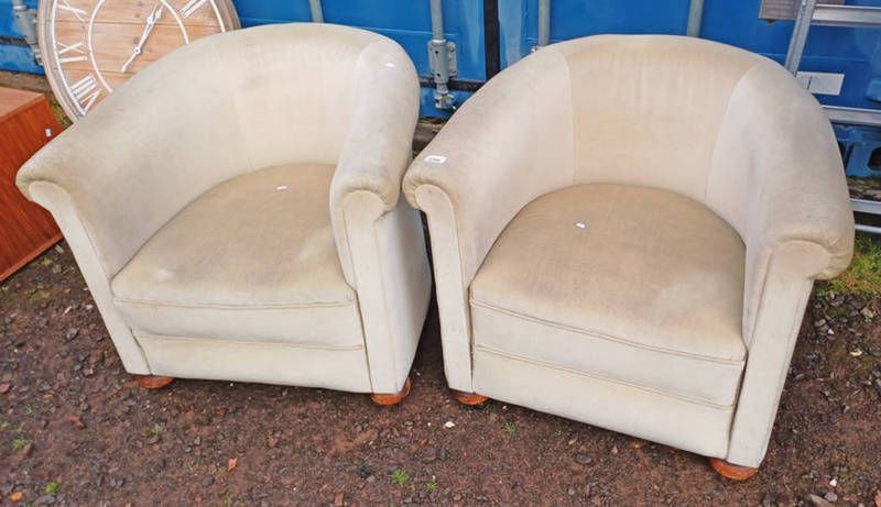 Pair of 20th century overstuffed tub chairs