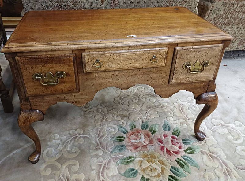 19th century style low boy with 3 drawers on queen anne supports - 66 cm tall x 97 cm wide