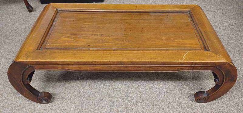 Chinese hardwood rectangular coffee table on shaped supports 98 cm long