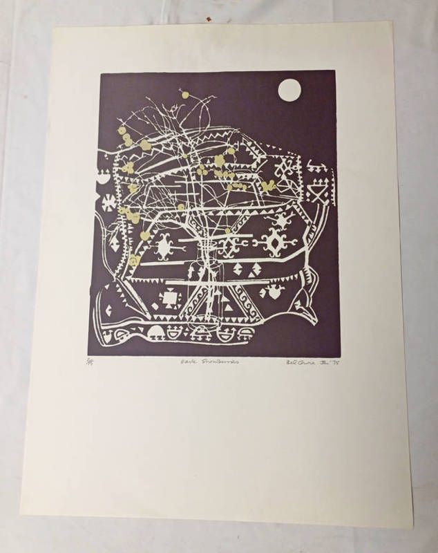 Bel cowie. dark snowberries signed and titled in pencil to mount unframed linocut print 2/15 76cm x 56cm