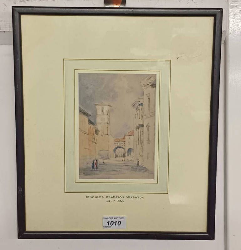 Attributed to hercules brabazon brabazon 1821-1906 european street scene inscribed to mount framed watercolour 17cm x 12cm