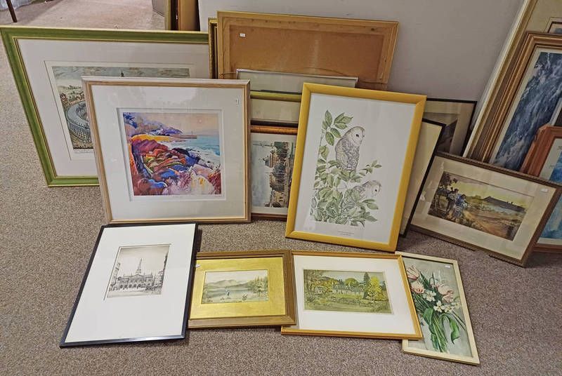 Large selection of prints, watercolours, etc to include; after bernd fleming, ''six'', signed in pencil,...