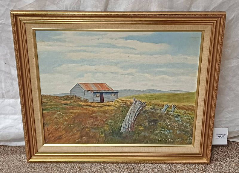 Vn tefler, abandoned cottage - australia signed, label to reverse framed oil on canvas 39cm x 49cm