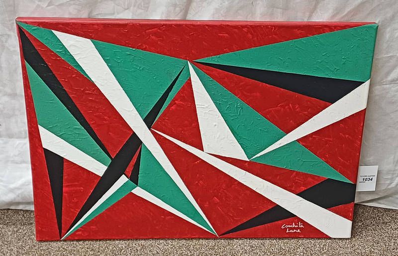 C jiminez, infinite triangles signed, label to reverse unframed oil on canvas
