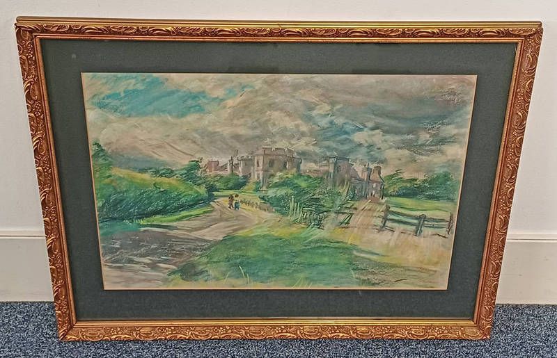 Attributed to meta meston fetteresso castle unsigned framed pastel 35 x 51 cm
