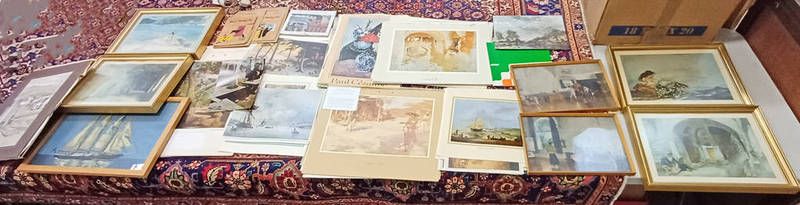 Large selection of unframed prints from various artists, w. russell flint calendars, etc