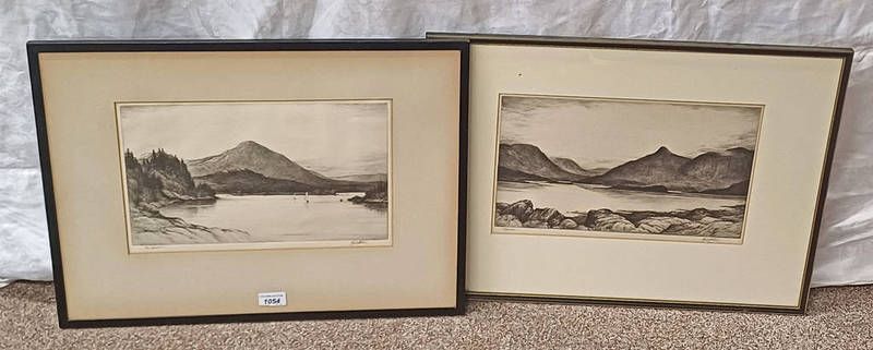 John fullwood, 2 framed etchings, ben lomond and glen coe, both signed, 22cm x 36cm each