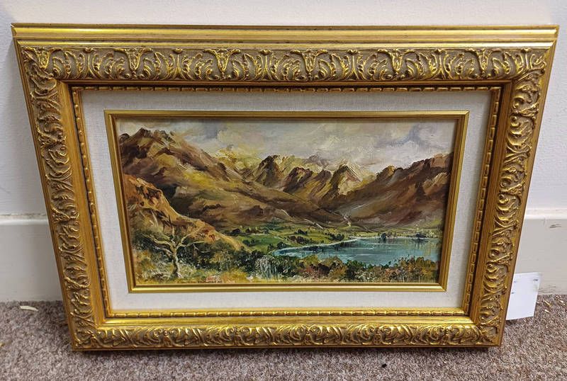James whitelaw hamilton, loch scene, signed gilt framed oil painting 19 x 35 cm