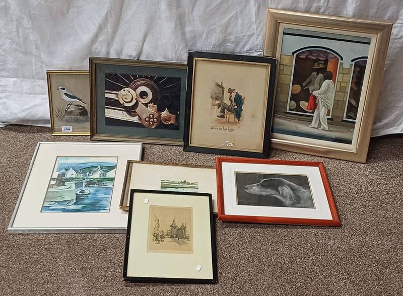 Ian tp mcintosh, common wheatear, signed, framed watercolour, together with various other pictures