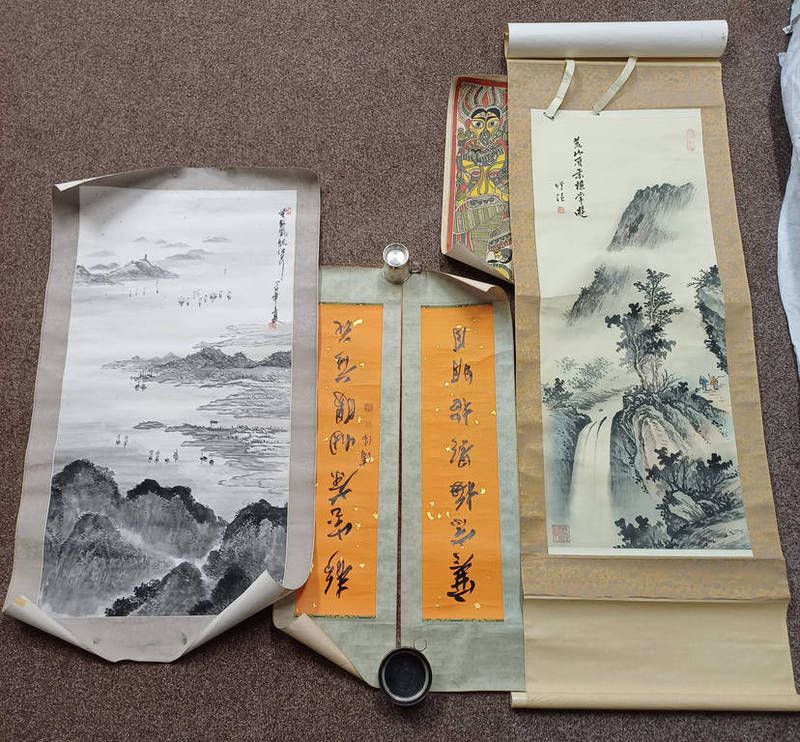 Selection of oriental scroll watercolour's. all with character marks