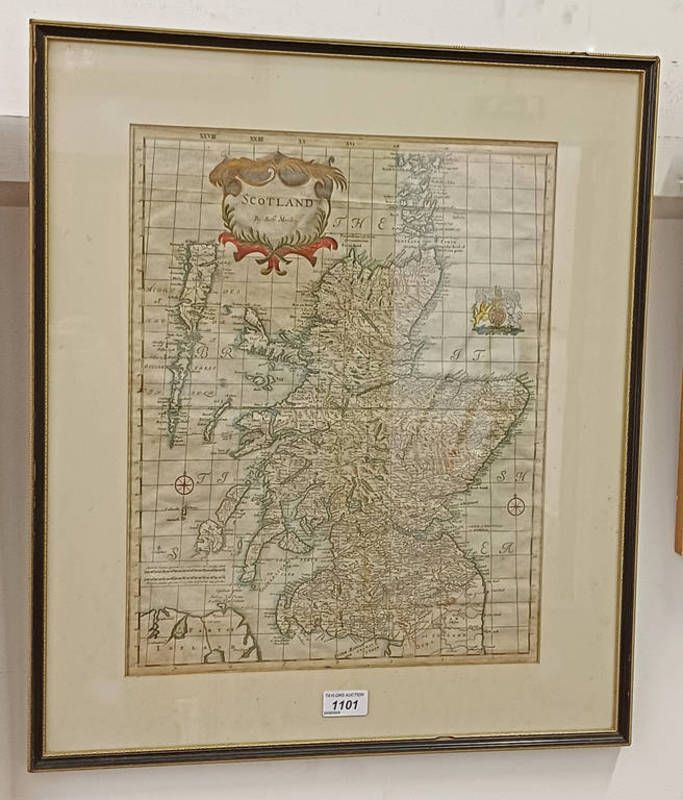 Robert morden (1650 - 1703) a map of scotland, hand-coloured, unexamined out of frame, lantern gallery label to rear, 44cm x 35cm