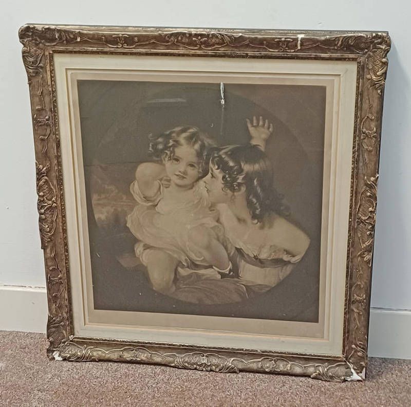 Gilt framed published engraving after thomas lawrence '' the calmady children'', signed in pencil, published 1892, 67 cm x 63 cm