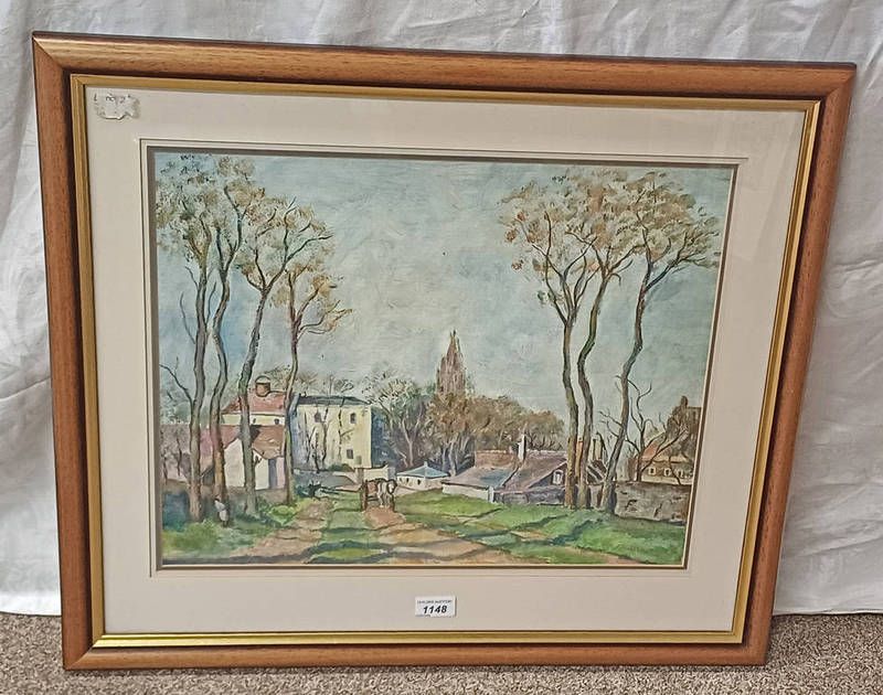Framed gouache of a european village scene, unsigned, 39cm x 49cm