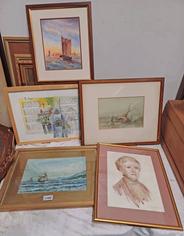 Framed watercolour after ludolf bakhuysen of a sinking sailboat, and various others