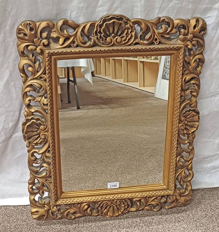 Gilt framed mirror with foliate scroll pierce work decorated frame, 45cm x 34cm (inside)